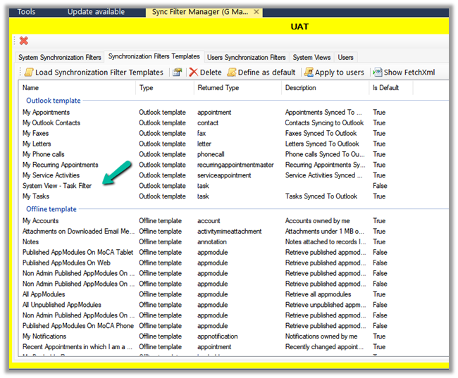 Select the new System View- Task Filter which we created earlier and click on Create – System Synchronization Filter Template from selected view(s)