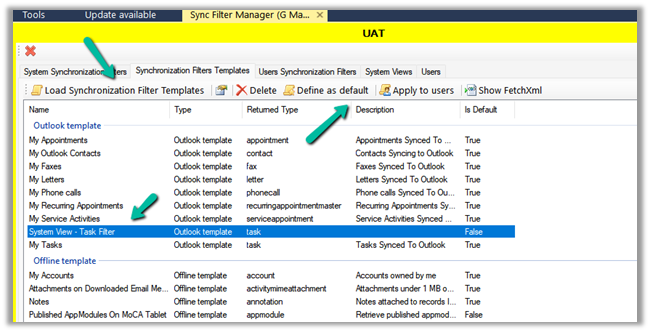 Inside the Synchronization Filters Templates tab, we can click on Load Synchronization Filter Templates to list down all the outlook templates.