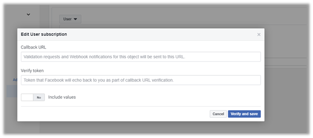 Back in Meta for Developers, in edit user subscription paste the Callback URL and for now in place of token specify any value and click on Verify and Save.