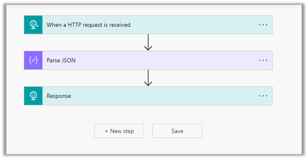 Back in Power Automate create a Flow with Request type Trigger, followed by Parse JSON and Response actions.