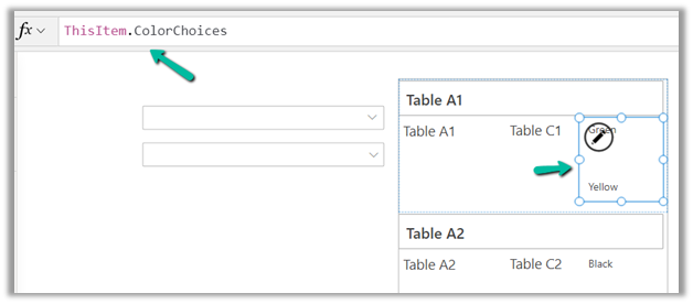 What we would want is based on the Table C record’s name selected in the combo box, we want to filter the collection to only show those records that are related to it.