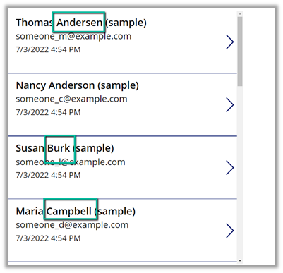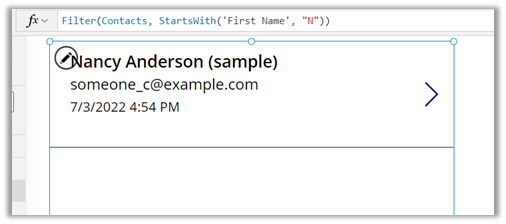 We have a sample canvas app with the gallery control bound to Contacts (Dataverse).