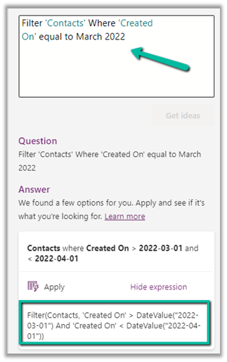 Let us check some of the examples of natural language transformation to Power Fx Formulas.