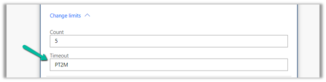By default, the value for count is 60 and Timeout is PT1H which equates to 1 hour i.e. it will either run 60 times or will run for 1 hour which occurs first.