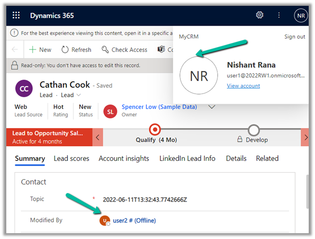 And this time, it shows modified by as User 2. (as we can see for user 1, the record is read-only as we have the rights removed)