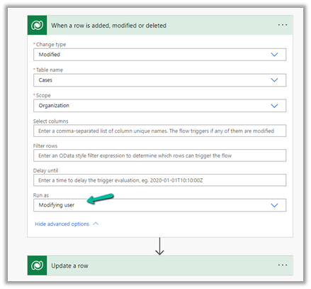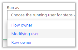 Run as option in When a row is added, modified or deleted trigger – Power Automate