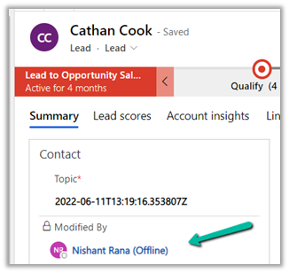 This time also modified by for the lead record is User 1, even though the Modifying User and Row Owner were different.