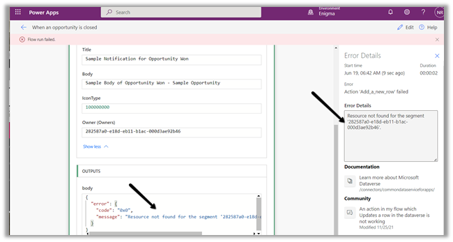 This time flow is successful. If you remember it failed last time when we removed the User 1 rights and the Run as was default Flow Owner.