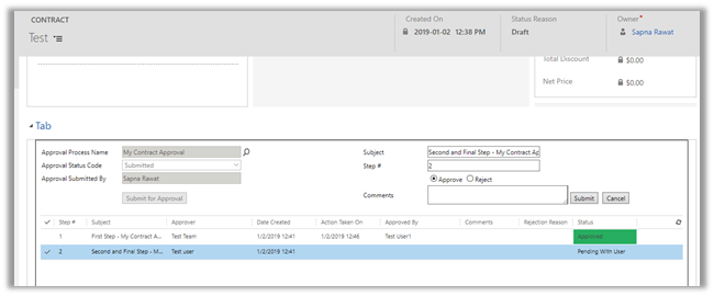 Let us select Approve and click on Submit. This updates the steps with appropriate status.