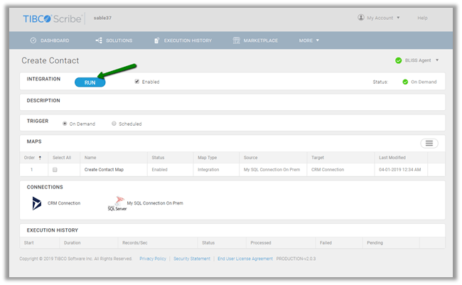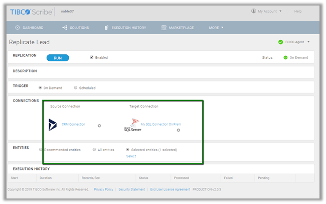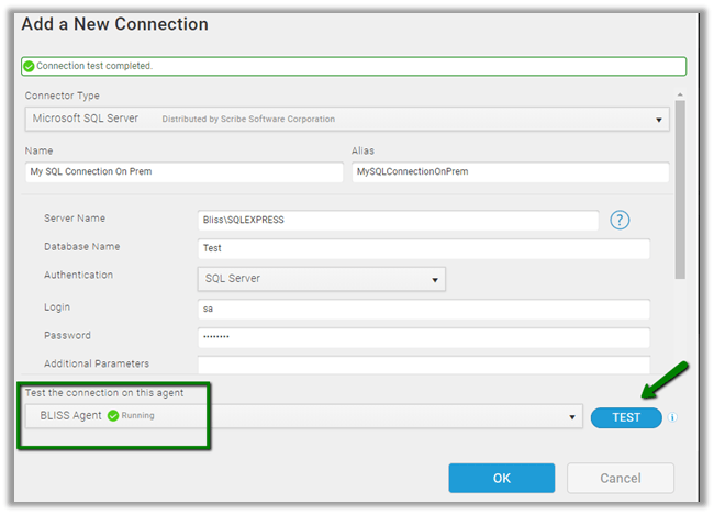 Make sure we have selected the On-Premise Agent. Click on TEST to test the connection.