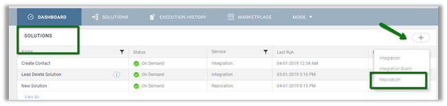 Go to the Dashboard and click on + to add a new solution in the Solutions section.