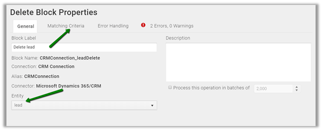 Specify lead as the entity and click on Matching Criteria tab
