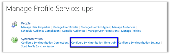 Select Configure Synchronization Timer Job to define the synchronization interval
