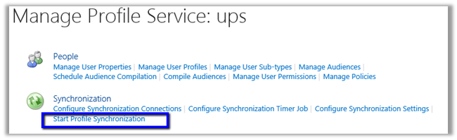 Go to Manage Profile Service à Start Profile Synchronization to start the synchronization
