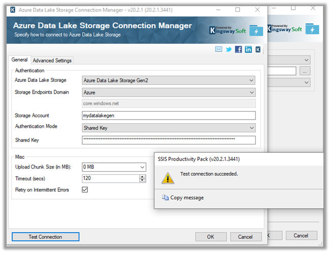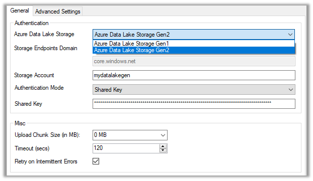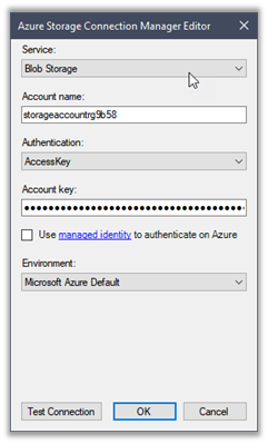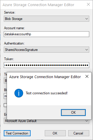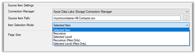 Similarly, for Destination, we can specify the Azure Blog Storage Connection Manager and the directory path as shown below