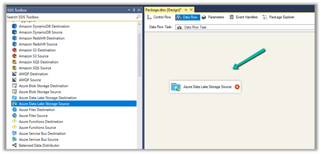 Create a new SSIS Package and drag the Premium File Transfer Task to the control flow designer.