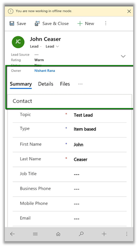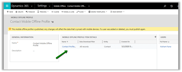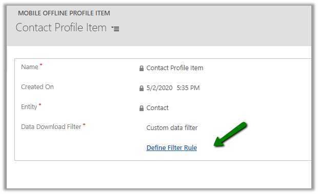 Let us open the Contact Mobile Offline Profile Item that we had specified earlier.