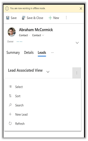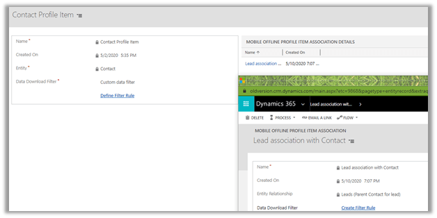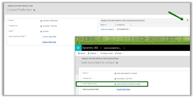Now back in the Contact profile, add an associated offline profile item and specify the Entity-relationship between contact and lead.