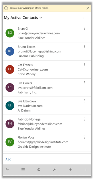 On publishing the above mobile offline profile, for users in offline mode, all the active contacts will be available.
