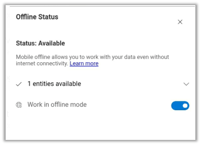 Once the download completes, we can see the Contact entity available and also the option of working offline enabled for it.