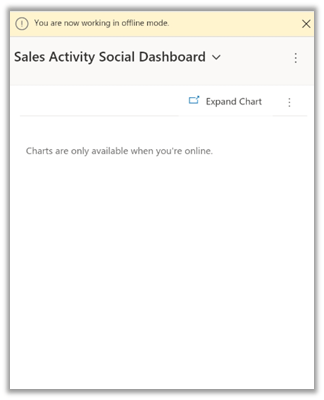 Enabling Work in offline mode, and navigating the dashboard displays the message as below