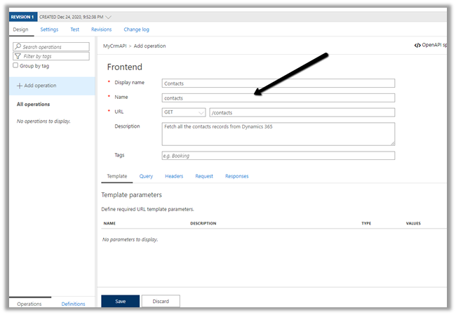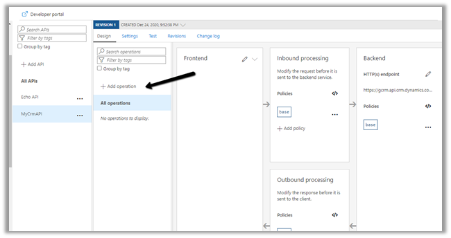 Click on +Add operation to add a new operation to the API.
