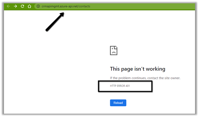Right now we will get the 401 error as expected as we have not passed the token expected by the Web API.