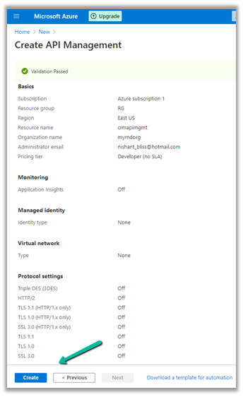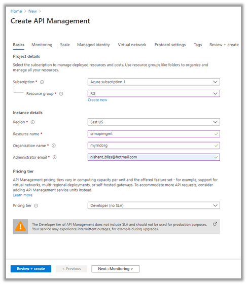 Let us start by creating the Azure API Management resource –