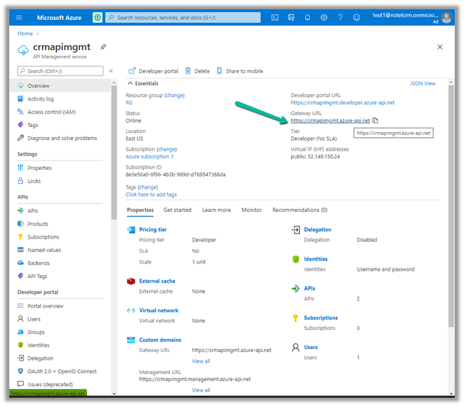 After the deployment is successful, we can navigate to it and can find the Gateway URL and Developer portal URL as shown below.