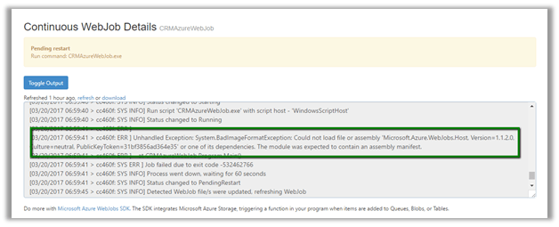 We were getting the below error while trying to run an Azure WebJob